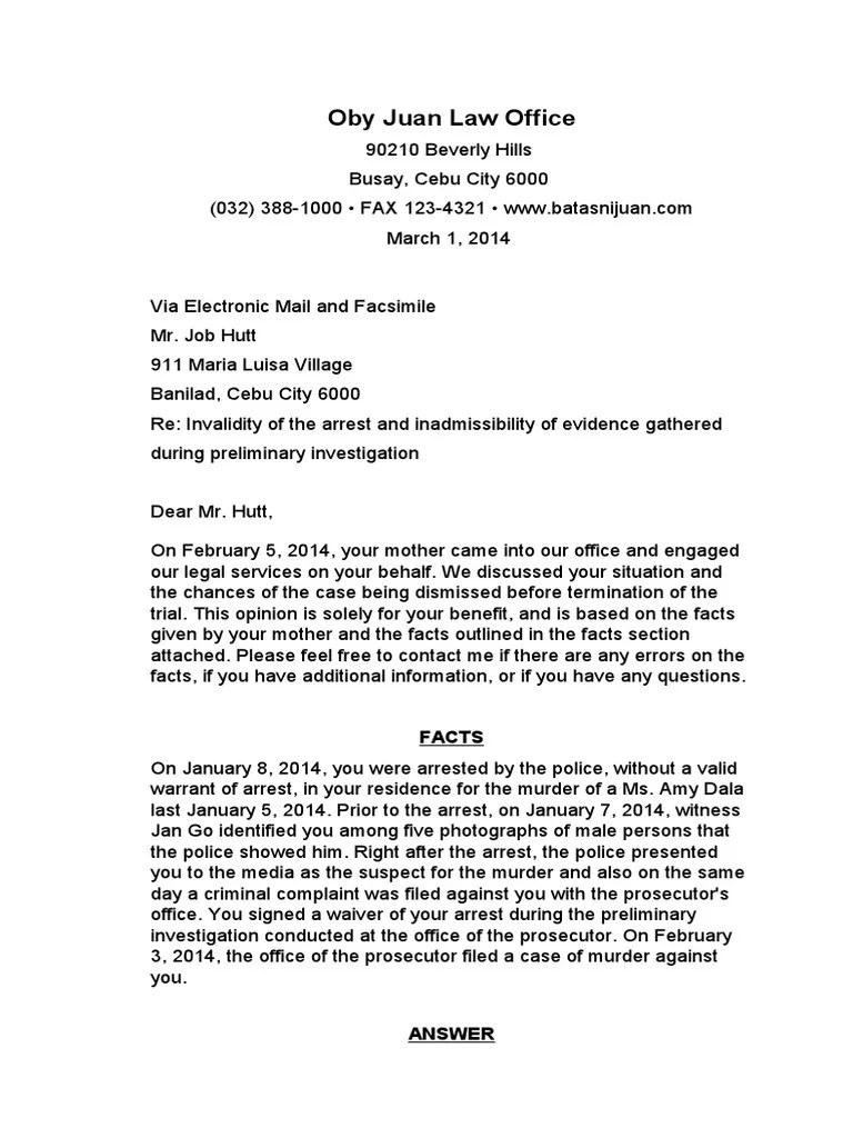 A legal opinion letter is a formal letter written by a lawyer to a client, providing an opinion on the legality of a certain situation. Legal opinion letter from an attorney; Principles for writing a legal opinion letter; Master the art of writing a legal opinion letter with our expert guide. Discover the essential components, formatting tips, and strategies to.